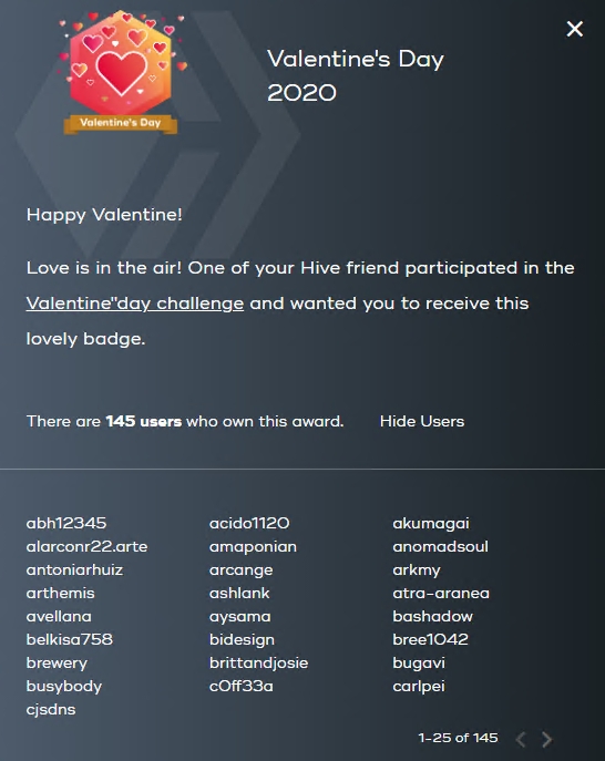 If you want more information about a badge, you can click on it. This will display a pop-up window with a complete description of the badge and the number of users who have successfully obtained it.