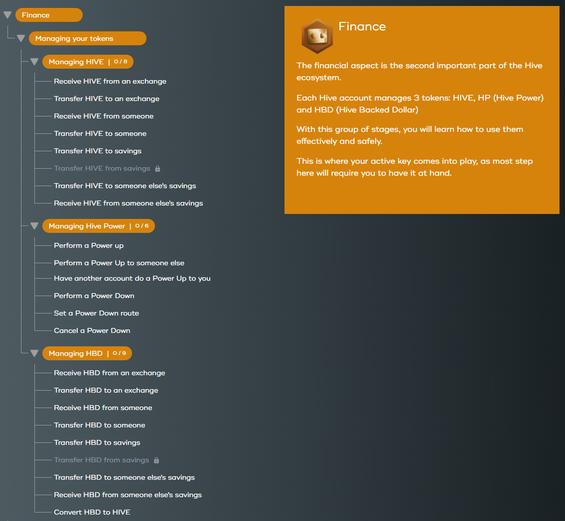 As you can see, no less than 23 steps are offered to you to discover the different financial actions. Remember that the Hive blockchain is a feeless. This means that there are no hidden costs when you perform these operations. This a good reason to give these a try and complete your tour.