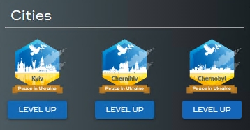 We have designed 3 generic "Peace & Love" badges and a set of badges for each Ukrainian city besieged or threatened by Russian troops. Other cities will be added as the situation evolves and depending on the available time for our designer to create the relative badges.