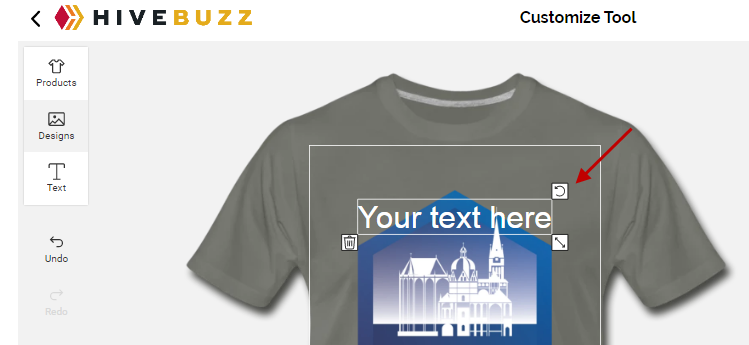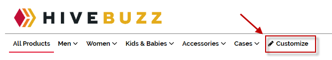 From an item On the HiveBuzz shop, select the item you want to order and customize and click the small pen below the picture