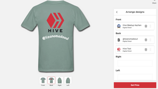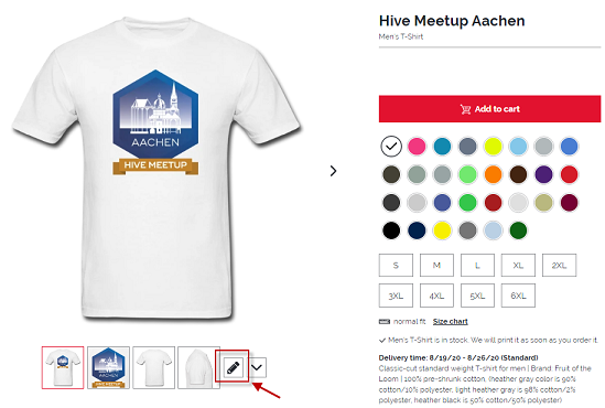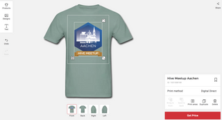 I chose a T-Shirt, green size M. At the front I chose the Hive Meetup Aachen Logo, made it smaller, and put it on the chest right over my heart.