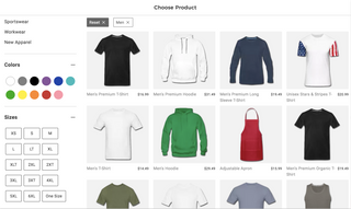 If you click on either of these categories you will get subcategories like T-shirt, Sweatshirt, etc., just below that you can choose the color and size of the article.