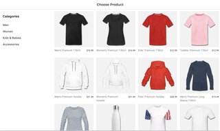 On the left, you click on Products to see all the options for Men, Woman, Kids/Babies, and Accessories.